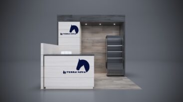 Impress attendees with meeting areas, reception counters, and storage integrated into a larger display.